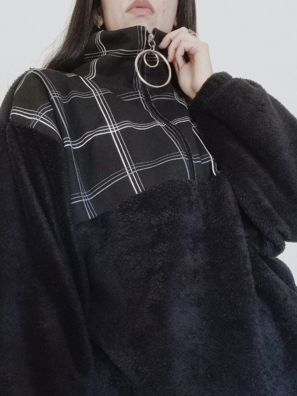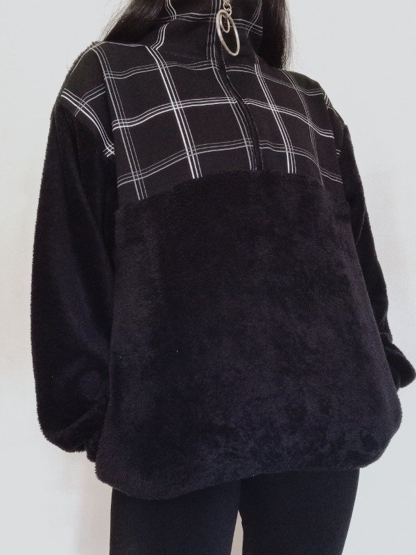 Buzo oversize confeccionado en polar soft y friza. Cuello alto con cierre y aros. Tiene bolsillos laterales.